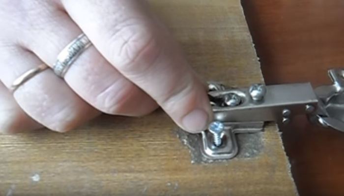 - Если при частых поломках, место для крепежа превратилось в решето, то можно сделать не большую накладку из любого материала и вновь прикрутить петли. Специальной отвёрткой усиленно закрутить до конца.