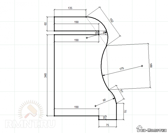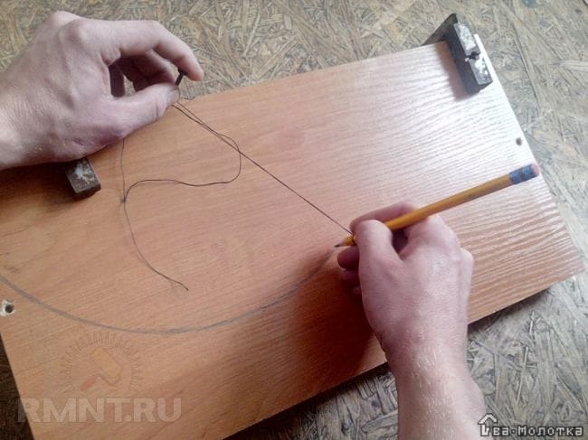 Изготовим боковины нашей полки. На имеющихся отрезках ЛДСП нужно разметить контуры фигурных деталей.