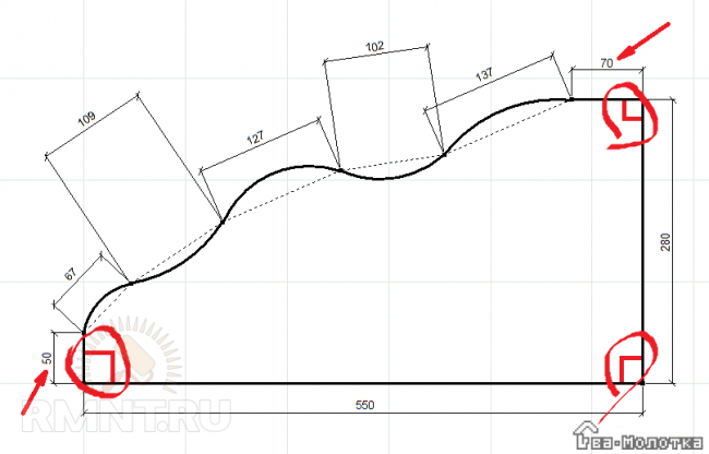 Начинать изгиб следует не с дуги, а с ровного участка в 30–100 мм, иначе есть риск получить неопрятное сопряжение при оклейке кромки.