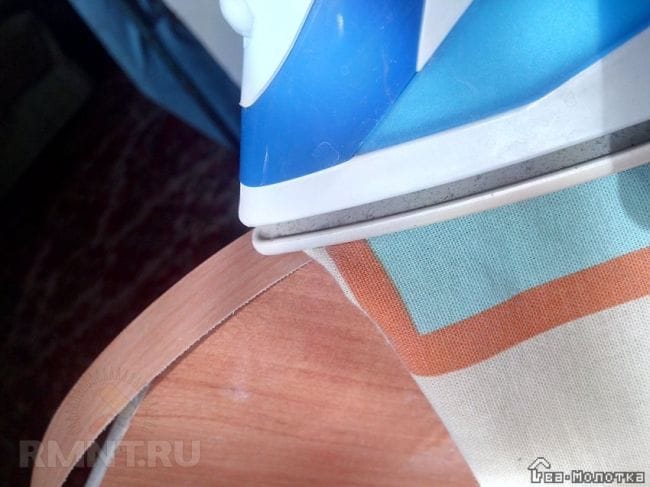 Детали готовы к оклейке. Ленту клеят горячим утюгом, нагревая и сильно придавливая её к зачищенной кромке.
