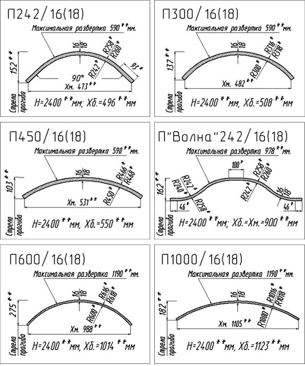 - вогнутые – сечение в виде дуги, но расчет ведется иным способом.