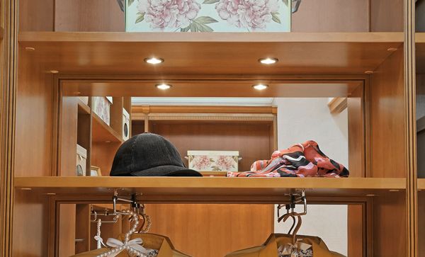 - вещи, отличающиеся значительными габаритами, лучше размещать на угловых полках;